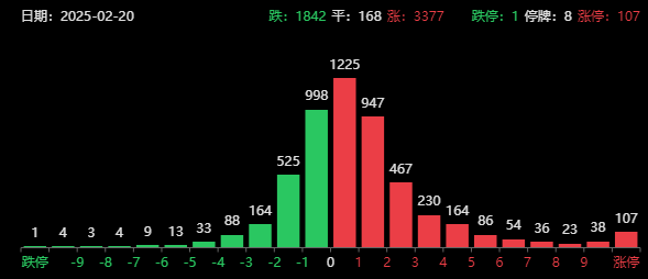 最后简单看下盘面,截至收盘,上证指数微跌0.02%,创业板指跌幅为0.06%,港股恒生指数跌幅为1.60%,恒生科技指数跌幅为3.04%。两市成交额小幅放量至1.79万亿,超过3300家上涨,107家涨停。